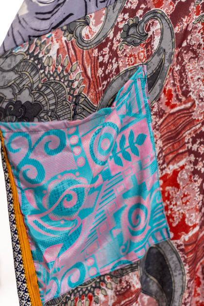Jeder einzelne wurde aus sechs verschiedenen, liebevoll ausgewählten Vintage-Saris gefertigt und macht dein Outfit zu einem echten Hingucker.